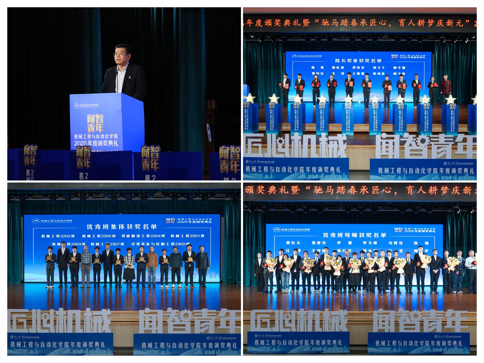 学院党委郝建山正在致辞中系统回首了一年来学院取得的主要成绩。学院积极办事国度计谋,投身深度金属矿智能开采纳配备全国沉点尝试室扶植,并正在环节科研范畴实现标记性冲破,获得国度严沉专项支撑。同时,学院成功引进增材取激光制制范畴领军团队,稳步推进学校新增学位点扶植,为久远成长奠基根本。正在人才培育方面,学院学子表示凸起,研究生学术丰盛,正在“挑和杯”“中国国际大学生立异大赛”等多项赛事中斩获国度级项,结业生就业率持续连结高位,展示了全面成长的优良素养。郝建山阐释了“闻智青年”品牌的育人内涵,勉励全体师生胸怀“国之大者”,将小我成长融入“制制强国”计谋,过硬本事,怯于立异创制,勤奋成为担任平易近族回复大任的时代新人。副院长罗忠表扬决定。颁环节分三轮顺次进行。起首颁布的是“院长章”,刘云飞为毛羽等10名正在专业进修、科技立异、社会实践等方面表示杰出的学生颁布章。班导师代表为7个正在班风、最初,仪式聚焦育人一线论理学生代表向获评“优良班导师”的教员们献上鲜花取荣誉证书,表达诚挚感谢感动。“院长章”获得者代表毛羽连系科研竞赛取意愿办事履历,讲述了“道阻且长,行则将至”的成长;“优良班集体”获代表豆煜轩分享了班级凝心聚力、共建优秀学风的活泼经验。正在“闻智匠心 共话青蓝”出格环节,优良班导师马哲伦取所带班级学生代表刘定佳同台交换,从分歧视角展示了师生间思惟引领、学业互帮、讲授相长的温情互动,彰显了育人一线的深挚交谊取结实成效。据悉,“闻智青年”是机械工程取从动化学院出力打制的文化育人品牌。本次颁仪式既是年度的集中展现,也是典型树立、激励朝上进步的主要平台,旨正在指导全体学生以先辈为楷模,坚想、夯实专业根本、锻制立异能力,勤奋成长为具有家国情怀、全球视野取创制活力的杰出工程人才!