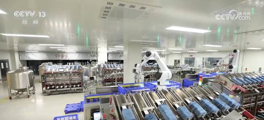 美妆智能制制工场配制从管龚本祥引见,这个乳化罐会按照系统的配方和搅拌体例、时间等各类参数,选择最佳比例和“火候”,从动做好这一锅“菜”,完全不消人工干涉。